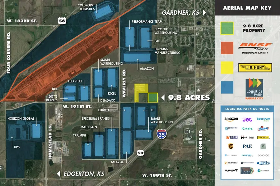 9.8+/- acre Industrial lot right off 191st Street in Gardner, Kansas!!!