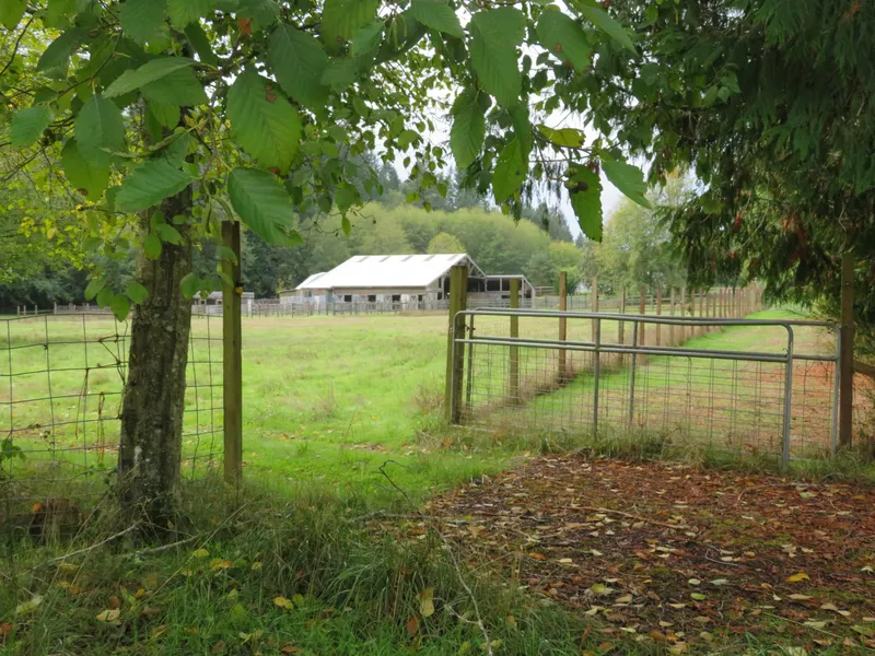 Serious Horse Facility with lovely, spacious Rambler. Private setting down long gated driveway, private well and septic just pumped and inspected. Huge barn with enormous lofts on each side for hay and storage. Majority of the 9.95 acres is cleared approximately 2 acres still in marketable timber. Level property with good draining soils, cross fenced for good pasture rotation. Water plumbed out to back pastures, wash rack and barn. Main barn has 4 box stalls and tack room on one side and finished rooms and plenty of space for more stalls on the other side. In the center is a covered riding area 60' X 60' with an additional riding area uncovered attached for an arena of 60' X 120". Stalls are matted and have long runs off each stall. Lofts could handle 10+ tons of hay. Many other outbuildings currently used as more stalls and storage. One outbuilding was damages this winter, Insurance Company will be rebuilding.