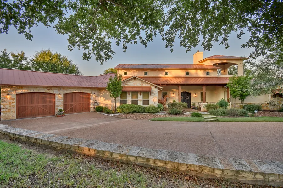 Custom hill country-style home situated on ~10 gorgeous wooded acres on the famed La Bahia Trail. This 3/3 custom home was built for luxury living and entertaining. Constructed by Acacia Homes in 2013, the home has a lifetime seamless metal roof, whole-house generator, 2 tankless water heaters, two-car garage with "mud shower", whole-house water softener, hand-troweled plaster finish, and more additional custom details than can be listed here!
