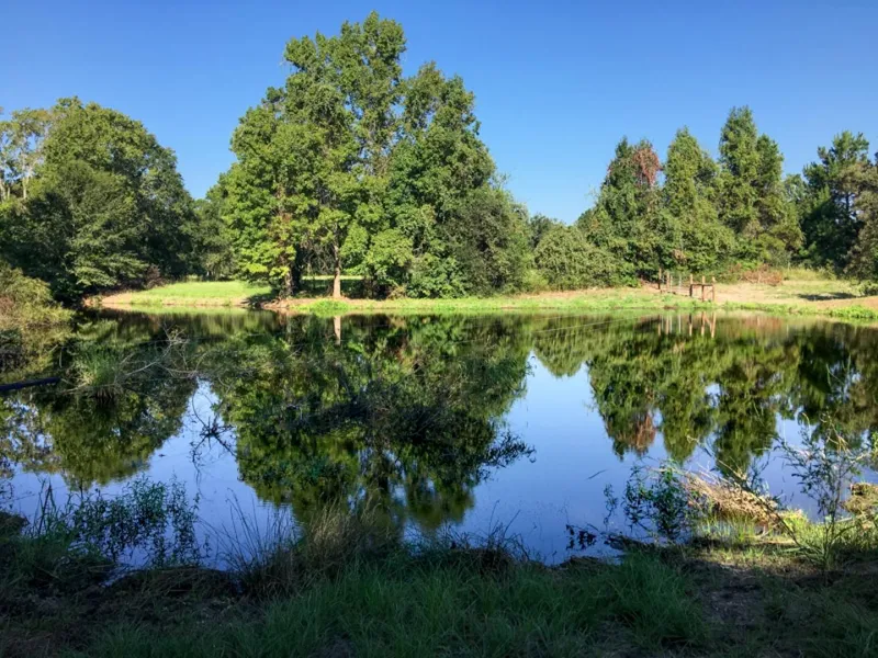 Rolling pastures & woods mix. 22 acres of tifton Bermuda. 26 acres native woods. Fenced & cross fenced. 2 lakes. 25'x30' equipment barn w/2 roll-up doors, rock floor. 40'x40' hay barn, 2 story. Cattle guard, 2 rocked entrance with wings.