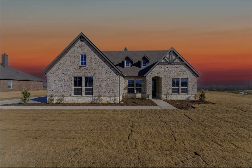 Ask us about our Trade In Trade Up program, we can buy your home! he Verbena floor plan features a modern, open-concept layout and the sought-after features today s homeowners are searching for. With four bedrooms, three bathrooms, and a flex room, this plan boasts just over 2,400 square feet of functional living space. Upon entering the home off the front porch, you re welcomed by an inviting foyer. Immediately to the left is a hallway with a bedroom, walk-in closet and full bathroom, as well as a linen closet. Across the foyer is a flex room, perfect for a home office, formal dining room or whatever need your family has for the space. Past the foyer is the family entry, with storage space and mud bench, which leads to the laundry room and two or three car attached garage. Through the entrance, the home opens up to a large family room with a stately fireplace. Adjacent to the family room is a gourmet kitchen, equipped with a walk-in pantry, ample counter space and an oversized island. Finishing off this open-concept living area is a dining space which overlooks the covered back patio. The remainder of this one-story floor plan is just off the living space. A hall leads to two bedrooms with walk-in closets, another linen closet and a shared full bathroom. The back corner of the home offers privacy for the owner s suite, featuring a massive walk-in closet and bathroom with a dual-sink vanity, standalone soaking tub and glass-enclosed shower.