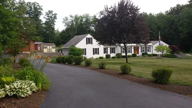 Immaculate, warm and inviting Cape on 2.02 acres of beautifully landscaped property, bordered by a tree line for privacy. Located near the cul-de-sac on end of the street . Three bedroom, three bath, eat in kitchen off heated sun room w/cathedral ceiling and skylights , formal dining room, family room w/cathedral ceiling and sky light. Den or office space plus recreation room. Heated above ground pool, large new trex decks, covered cooking area with Sunsetter awning. Attached two car garage with attic. Attached one car garage on west side Plus 24x32 detached garage with 2nd floor . There is a detached heated work shop. Whole house generator, Mitsubishi cooling and heating wall units in five room. Mature perennials adds to the many outdoor social or private spaces Neighborhood has eleven homes on similar size properties .
