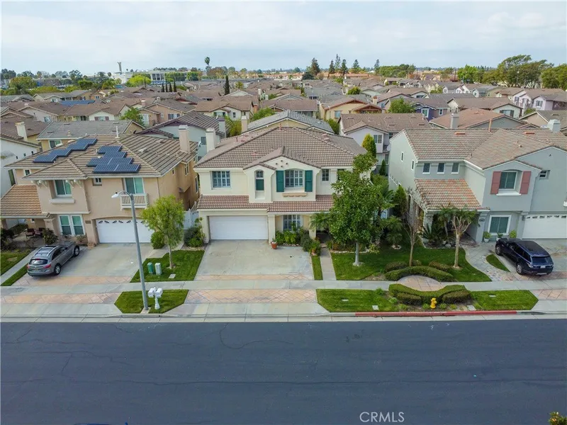 Your home will truly be your castle with this spacious, sunny estate located in the exclusive gated community of College Park! Welcome to 9009 Harvard Avenue, a gorgeous property you must see to believe. With 3,150 sq ft, 5 bedrooms, 3 bathrooms, a bonus library/office, this is all you could need or want in a home! Elegance abounds with rich maple flooring and classy plantation shutters accenting throughout. From your first step, you'll love the formal living room with its soaring cathedral ceilings. Beautifully open floor plan leads to a well-appointed kitchen with warm, natural wood cabinets, seemingly endless counter space and bar top, a convenient kitchen island, sleek Bosch refrigerator, gourmet Viking stainless stove and two separate dining areas. Entertainment and relaxation will be easy in adjoining family room with its cozy gas fireplace. Upstairs, an impressive primary bedroom entices with its elegant, wood flooring, grand size, and walk-in closet. Ensuite bath has separate soaking tub, walk in shower, and two separate vanities! There are 3 additional, sun-filled bedrooms on this level, each sizable, with ample storage. Working from home? You'll love the beautiful and open library/office and its rich, natural wood cabinets, built in bookshelves and desk. It's the perfect setup! Full laundry room, including high end Miele washer and dryer, completes the upper level. Outside, you'll find a low maintenance, drought friendly backyard, with a large patio area, and flanked by privacy providing vinyl fence. Two car attached garage has a super clean epoxy floor and whole house water filtration system. Low cost HOA adds wonderful amenities including pool, spa, playground, and picnic area. Centrally located, close to restaurants and shopping, just minutes from the 91, the 5, and Knotts Berry Farm: It's all right here!