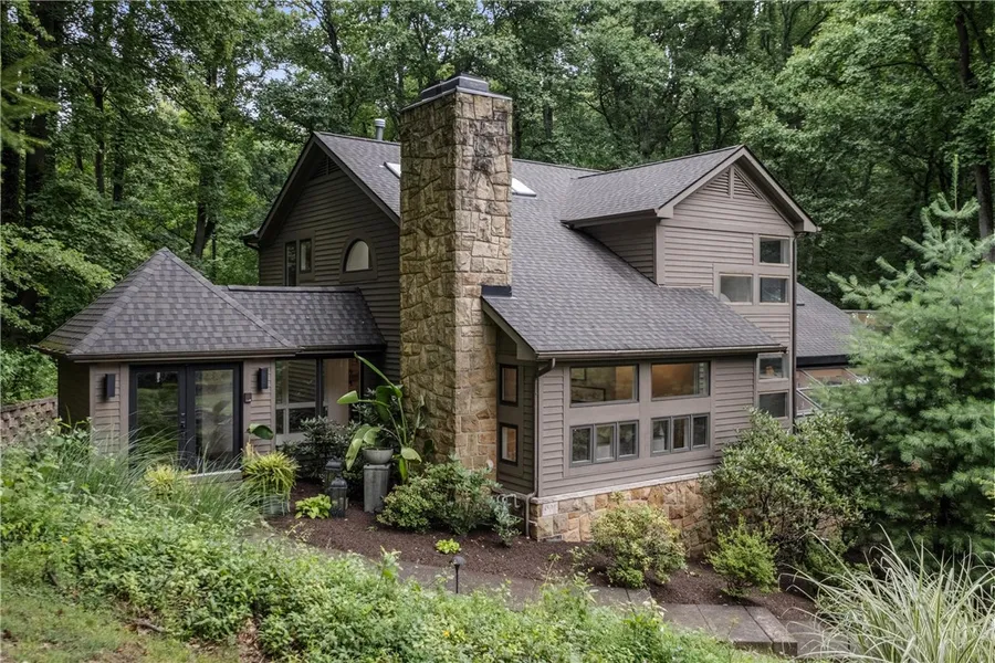 The epitome of luxury and tranquility in this stunning multi-level contemporary home. This 4BR 4.5 Bath home is nestled on a private 1.39 acre lot in Marshall Woods. Its open and seamless floorplan allows for a complete indoor-outdoor experience. Breathtaking views from your wrap around deck with clear panels allowing for an unobstructed view of nature. As soon as you step into the grand living space you are enveloped in endless natural light through your vaulted ceilings and all glass atrium making it the perfect place to unwind or entertain. Two primary suites are offered allowing great versatility. The warmth of the white oak flooring and the whole house Bang & Olufsen sound system offer a retreat like feel without ever leaving your home. The eat in kitchen has a double-sided FP and gorgeous granite throughout. Enjoy family gatherings in your finished lower level. This home offers the perfect blend of luxury, privacy and natural beauty throughout.
