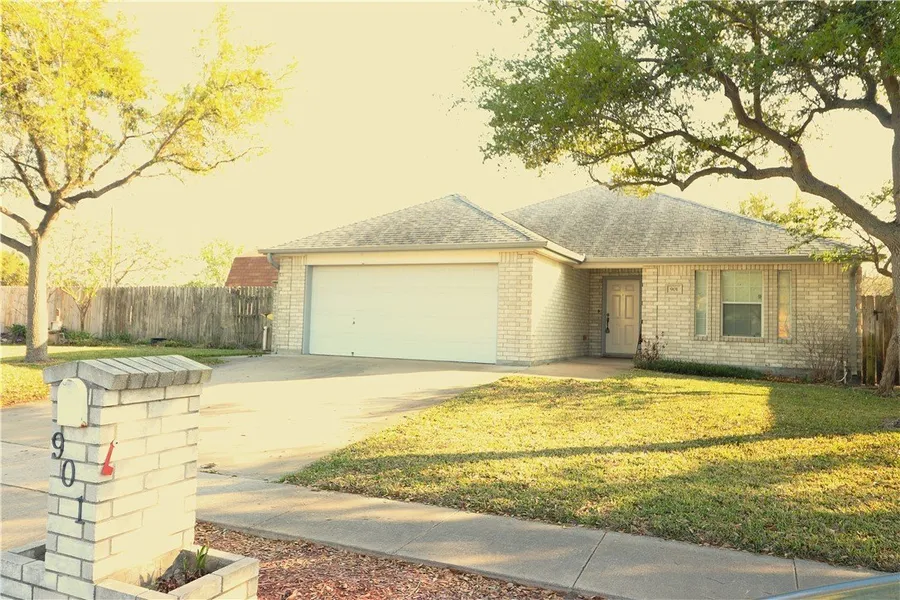 Your new home is close to schools, shopping & easy access to the Beach at Padre, NAS, & Laguna Madre! Well maintained & ready to move in. Primary suite has shower & jetted tub, huge closet & private patio entrance, other 2 bedrooms share a bath, extra-large landscaped yard with water well to keep the lush green yard, Storage shed to convey. Open concept living, dining, & kitchen. Oversized laundry room with pantry. PRICED TO SELL: $275,000, owner willing to trade property.