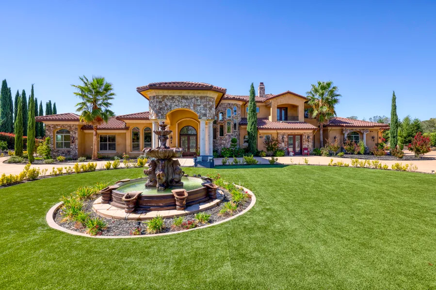 Let the natural grandeur amaze you as you enter this unmatched Mediterranean-inspired estate with a commitment to indoor outdoor living. Be greeted by the lush greenery, stone accents, circular driveway, and oasis-like landscape. Inside, the 24’ recessed, hand-sponged ceilings, marble floors and staircase, motorized curtains, and the formal living and dining space with views of the immaculate backyard welcome you. Upon entering the kitchen, a butler’s bar and wetbar lead the way. The chef’s kitchen features a 15’ island with storage, Granite counters, hot/cold water spouts, Wolf Range, Subzero fridge, warming drawer, 2 dishwashers,11’x11’ pantry and secondary kitchen with a dishwasher, sink, Wolf range, and outdoor access. With 6 ensuites, all with walk-in closets and 3 with private terraces, this home will be a sanctuary for all who visit. The primary retreat highlights a marble fireplace, steam rain shower, dual vanities, and pool views. Upstairs, a theater/game room with patio and junior suite. The home also features caramel hickory wood floors in the main living spaces, 6 fireplaces, office with box beamed ceilings, and a gym. Outdoors features a complete outdoor kitchen, infinity pool and spa, endless fruit orchards, half basketball court, gazebo, security system, automatic drip system, RV parking, and 4 car garage with 4 EV chargers and built in storage.