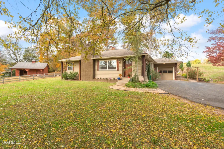 Mini farm located just minutes to the Farragut line. This mid century ranch home has been completely updated and features an open floorplan. This home sits on just under 3 acres and features extensive landscaping, huge paver patio with waterfall and built in fire pit. The property is fenced for goats or horses and features 2 pastures and a custom built barn with 3 stalls, hayloft with skylights and grooming area. Barn has water, lighting and electric. This property is perfect for someone with horses, dogs or goats. Natural spring is located on the property, as well as raised bed gardens, garden shed and so much more. Located just 2 minutes to Ft. Loudon Lake and marina.
