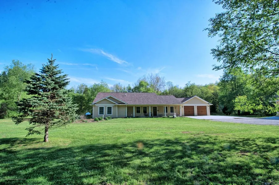 Trying to find your dream property between Lansing & Grand Rapids? This 4 bedroom ranch home is nestled amongst the trees, private & secluded from the paved road on 3.85 acres. Come play in the woods, or watch the wildlife while drinking your morning coffee or evening drink. Home is largely barrier free, from near zero entry to wide halls, and wide doorways throughout. The welcoming foyer with ceramic tile flooring leads you into the open floor plan. A gigantic living room area with cathedral ceiling & tons of natural light flows into the kitchen & dining areas, perfect for entertaining. Check out the Manchester decorative wood stove, capable of heating the whole home! Solid surface counter top, ample cabinet space & a pantry for the chef in the kitchen. See Supplement for more remarks.