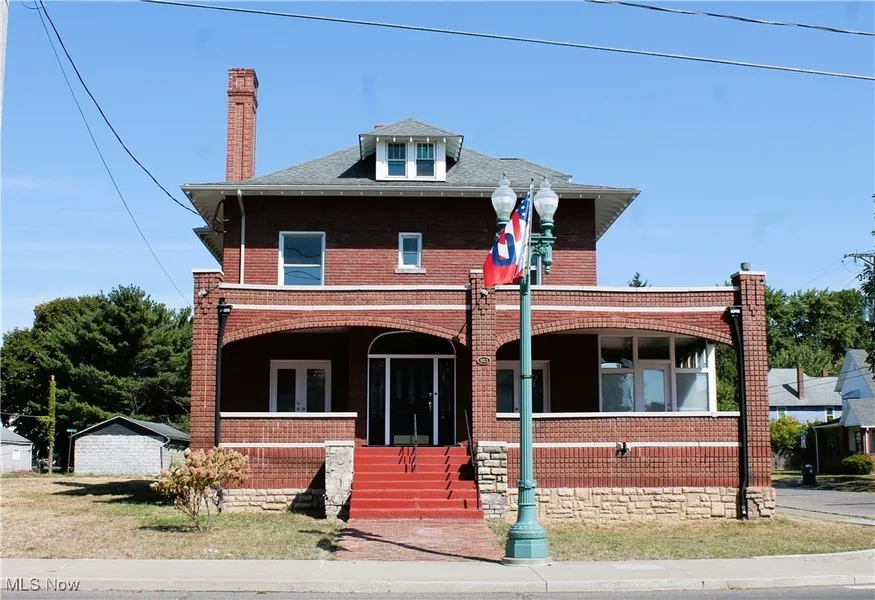 There's no lack of space in this beautiful brick home. First floor features a very spacious living room with a decorative fireplace. The living room opens into the sunroom with access to the front porch. The kitchen has beautiful cabinets w/pullouts, stove, microwave, and dishwasher. A small area for a refrigerator and additional cabinets. A half bath completes the first floor. Second floor features the master bedroom with decorative fireplace, two more bedrooms, full bath and a built-in linen cabinet and vinyl windows. The walk-up attic has finished walls and vinyl windows, could be used for a fourth bedroom. The basement has laundry hookups, half bath and a number of rooms that could be finished for additional living space or storage. A two-car detached garage with door opener, 12 ft. ceilings, radiant heat and 220V. Two additional lots, updated electric, security system available. Also zoned B1.