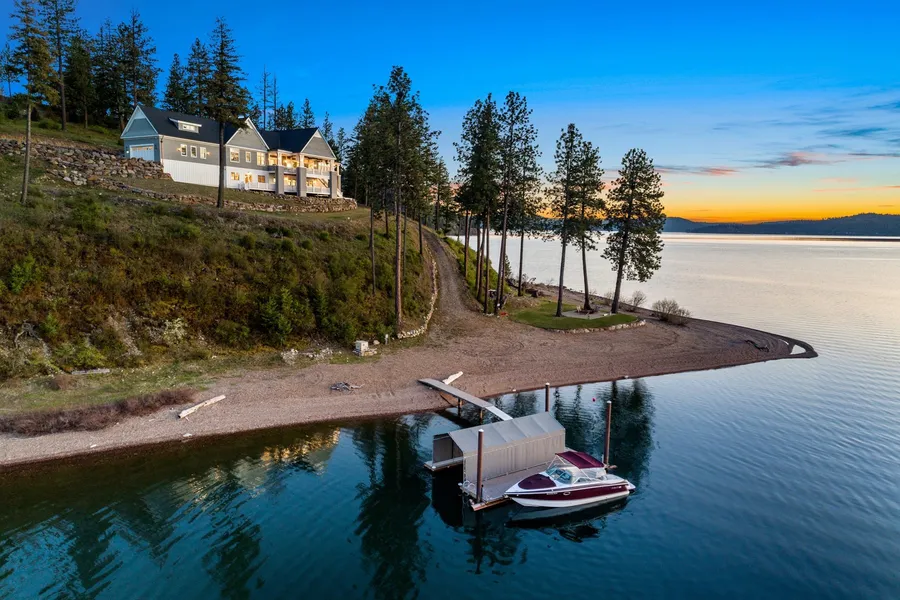 Welcome to The Retreat at Pugh Point. This rare CdA Lake offering defines tranquil luxury. From the moment you arrive a sense of calm envelopes you. Greeted by stunning lake views & sophisticated coastal design, set off by relaxed, comfortable tones, the only thing left to do is melt into this architecturally refined home. Boasting 1651 FEET of level WATERFRONT, a Private Dock & over 6 ac of privacy, 6079 SF, 5 Bedrooms of impeccable craftsmanship just completed in 2021, FULLY FURNISHED with Restoration Hardware furniture, hand-selected features & Smart Home package featuring easy remote controls for security, heat, music, lighting, drapes & more! Main floor primary suite is a tranquil oasis, lower level is designed for caretakers, guests & multi-generational living. The level beach & acreage holds enough room for a pickleball court, guest home, Bocce & more. Relish in seamless indoor outdoor lake living w/outdoor decking & BBQ kitchen. Coastal elegance meets Lake Country.