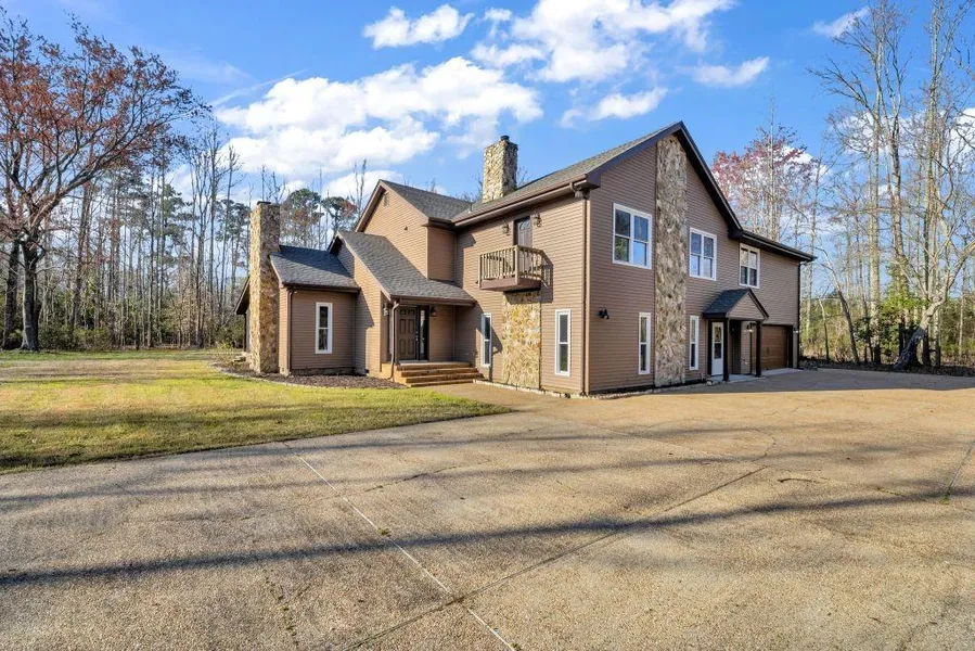 TONS OF PRIVACY with This Spacious Home on 10 Acres! Unique House Rustic Touches...Fresh Paint & New Flooring Throughout, Updated Kitchen with New Cabinets, Granite Countertops, & Stainless Steel Appliances, 1st Floor Bedroom & Full Bath, Large Family Room. Large Primary Suite with Private Bath, 2 Walk-In Closets, & Balcony Overlooking Backyard, 4 Additional Bedrooms on 2nd Floor have Attached/Private Baths, 1st & 2nd Floor Laundry, 1st Floor Bonus Room could be 7th Bedroom or Home Office, 2 Car Attached Garage & Detached 1 Car Garage/Workshop, Screened Porch, HUGE Backyard, & Tons of Parking, New Roof. Easy Access to Coleman Bridge & Yorktown.
