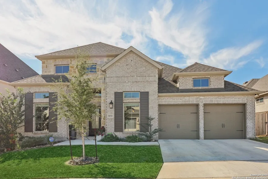 Backs to green space * 3-car tandem garage * Soaring 13-ft ceilings * Game/media room & office * Northside ISD This elegant Perry Home offers luxury, flexibility, and a peaceful backdrop of green space in one of San Antonio's most desirable areas. Step inside to find soaring 13-foot ceilings, abundant natural light, and ceramic tile flooring that enhances the home's modern flow. The open family room with fireplace connects to a gourmet kitchen featuring a granite island, gas cooktop, double ovens, stainless steel appliances, and a butler's pantry leading to the formal dining room-ideal for entertaining. Versatile spaces include a dedicated home office for remote work and a first-floor game or media room for relaxation or gatherings. The spacious primary suite showcases a spa-style bath with soaking tub, glass-enclosed shower, dual vanities, and an oversized walk-in closet. Guests will enjoy a private secondary suite plus two additional bedrooms and a full bath. Outdoor living shines with an extended covered patio overlooking the serene greenbelt-perfect for evening dining or weekend enjoyment. A 3-car tandem garage, tankless water heater, and Northside ISD schools add convenience and value. Ideally located near Loop 1604, I-10, La Cantera, The Rim, UTSA, and San Antonio's top shopping, dining, and entertainment. A move-in-ready home that balances modern design, comfort, and Hill Country charm.