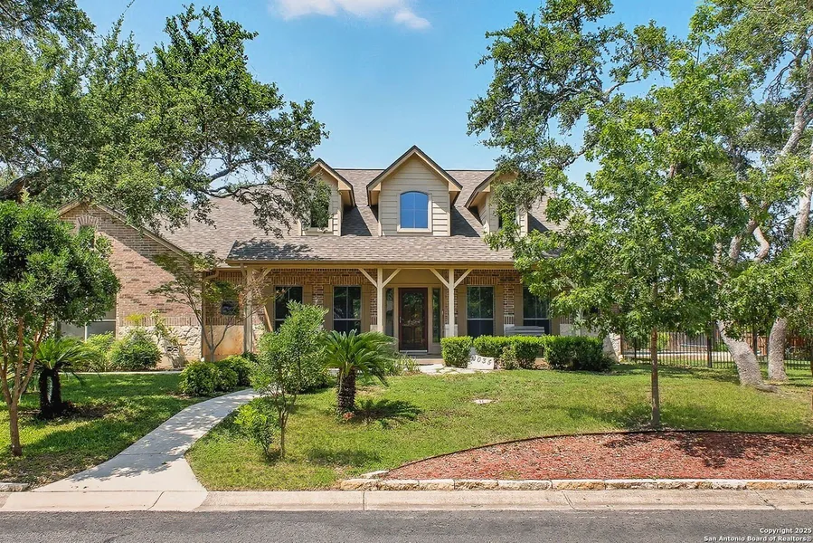 **SELLER MOTIVATED, BRING ALL OFFERS!** Welcome to your private oasis! Situated on a spacious 0.60-acre corner lot in a gated community, this beautifully upgraded home offers a serene lifestyle surrounded by lush greenery and mature plants including a peach and pomegranate trees. The extended long driveway provides up to 6 parking spots, while inside, the open floor plan shines with natural light, soaring high ceilings, vaulted touches in the main living and master suite, updated laminate flooring, tile, fireplace, soft-close kitchen cabinetry, a new flat stovetop that can be switched to gas and remodeled bathrooms featuring walk-in showers. The fourth bedroom with closet can be used as flex room/office! Comfort is enhanced with two smart thermostats-one controlling half of the home and the other managing the opposite side-along with a new HVAC system (2024), new water heater (2025), and recent roof updates (2020 main home, 2025 garage). There are also two connection options to place a refrigerator. Outdoors, you'll enjoy a custom-built pool, a newly added half bath dedicated to poolside use, a newly constructed air-conditioned studio perfect for work or fitness, and a detached back garage with water access that could easily be converted into a pool house. With Medina Lake just minutes away and schools nearby, this home blends modern upgrades with resort-style living-perfect for both relaxation and entertaining.