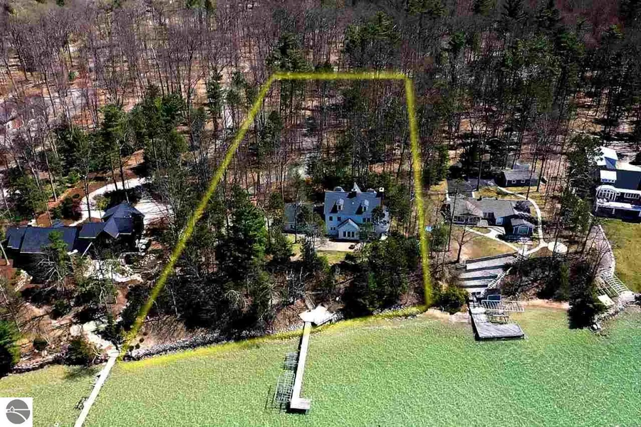 Glorious home on beautiful Elk Lake! This 5 bed, 4 bath, 2 1/2-story home is situated on a large 2.56 acre lot and is elevated above the shoreline on a small bluff. The home is charming and exemplifies the best of Northern Michigan living. The stylish all-white exterior highlights the elegant craftsmanship of the exterior and really showcases a beautiful wraparound and covered porch. Inside, the main level features a large living area centered around a warm fireplace and a shared dining and kitchen area with meticulous craftsman finishes. Beautiful wood floors run throughout the main level. Laundry off of the kitchen and a full bath off of a door leading to the lake complete the main floor. A marvelous staircase leads the way to the second floor landing, with two bedrooms and a bath in between. The bathroom has a tiny door which leads to a secret room above the garage! Down the hall from the landing is a quaint study and the spacious master suite. The master bath features a glass wall shower, separate luxurious tub, and a two sink vanity with a large mirror. The master bedroom overlooks the lake and has two large walk-in closets off of the bedroom. The third floor contains one more full bedroom and full bathroom at the top of the landing and an open air room down the hall that is currently set up as a bedroom. Outside, the home is marvelously landscaped and has an intricate staircase and multi-level deck that lead down to Elk Lake. This is a truly special home and location. Come see what the pinnacle of Northern Michigan living has to offer!