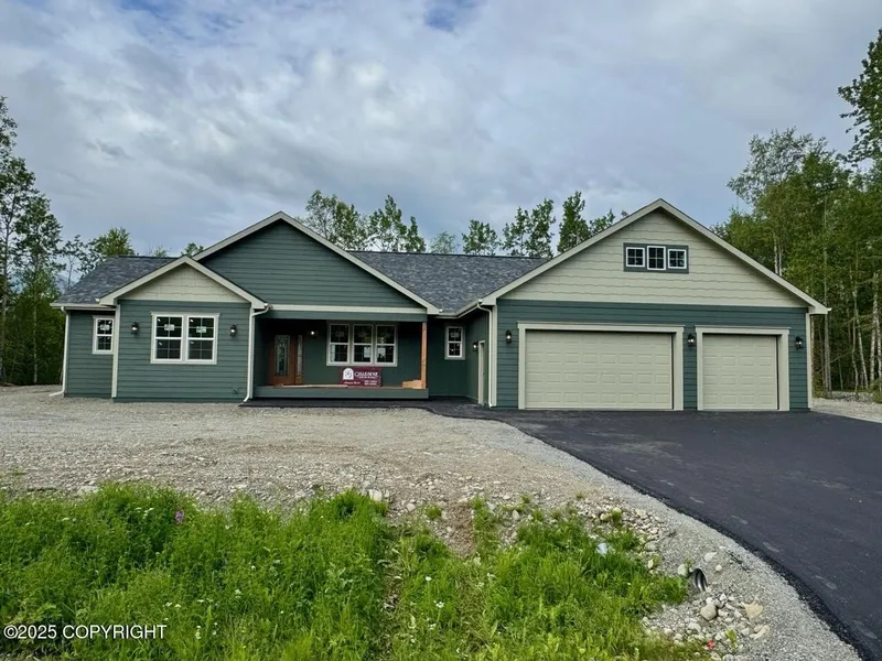 Beautiful Ranch house, great location in Palmer close to Hatchers Pass. Unique floor plan with 2020 sq ft on 1.53 acres with partial view in winter. Backyard slopes down to a meadow, very private. Plenty of storage with multiple closets, very nice primary bedroom with meadow views and bath suite w/ glass barn door. Large primary closet with laundry access. Beautiful kitchen with quarter sawn hickory cabinets and 8ft. Island, large pantry. Covered front and back porch with composite decks, 5 star plus energy rating (TBD), forced air furnace, gas fireplace in LR with vaulted ceiling. You'll love this gem of a house! To be completed by end of August or sooner.