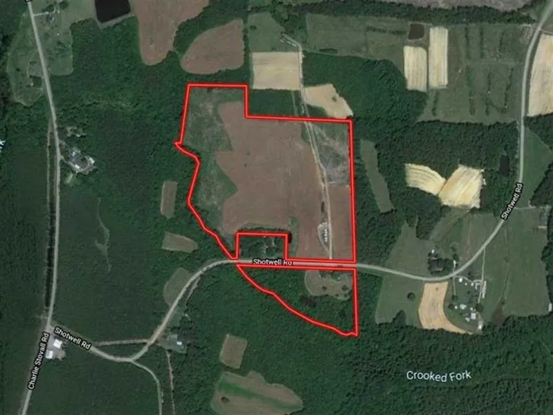 The north section has two agricultural fields that total approximately 20-acres combined and have been in crop production for many years, with the most recent crop being soybeans. The soil types on this farm are good (see Soil Type Map in the photos), and should continue to produce high yields of crops if they're continued to be managed properly. There is approximately 12-acres that were clear-cut in mid-2016 and the forest is naturally regenerating with various species of hardwoods and pines. These woods lead down to Crooked Fork Creek that runs from North to South along the western property boundary. This creek flows year round and is generally 8'-12' wide. It's rock bottoms and wild flowered banks make it very scenic and relaxing. The north section has approximately 600ft of frontage along Shotwell Road and one, ungated, primary entrance.