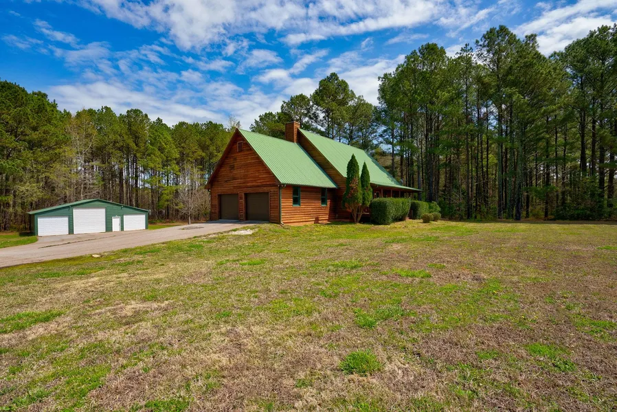 Southern Land Exchange is proud to present this custom-built pine log lodge on 5 acres in Winterville, GA. The home is truly impressive and has all the necessary characteristics of a classic log home, from the high vaulted ceilings to the wide-open living spaces. Fun fact: did you know you don't have to locate studs to hang items in a log home? That's right, the whole house is virtually one large stud. Did I mention it was a big house...nearly 4,200 sqft with 6 bedrooms and 3 full baths in all! As you approach the main entrance, you'll first see the huge front porch which is over 270 sqft. Walking through the front door, you'll immediately feel the freedom and mobility afforded by the large open-span living room. As you look up at the beautiful 30ft cathedral-style vaulted ceilings, you'll notice the knotty pine ceiling and exposed log beams. Speaking of knotty pine, you'll find it throughout the entire house. The open design seamlessly connects the living room, kitchen, and dining area, perfect for hosting events with family and friends. Another impressive attribute is the massive top-to-bottom stone fireplace, a must-have centerpiece of all log homes, making the cold months enjoyable as you gather around with loved ones. The master suite is located on the main level while upstairs you'll find a fully finished versatile loft space with two additional bedrooms and a shared bath. Downstairs you'll find the partially finished basement and a ton more space with endless possibilities, as well as an additional garage door to the basement. The attached three-car garage and huge metal building provide ample space for vehicles, equipment storage, and workshop space. This log home is nestled on a private lot in a very picturesque part of the County and sits across from a beautiful 300+ acre farm. Enjoy country living with this property conveniently located near Athens but without the hustle and bustle of the city. Now, not everyone is looking for a log home and that's okay, but I think you'll be pleasantly surprised how much it grows on you. I grew up in a large log lodge, very much like this one (my parents still have it to this day) and it was the coolest house to grow up in. For more information call Travis Ebbert with Southern Land Exchange at (706) 614-8840.