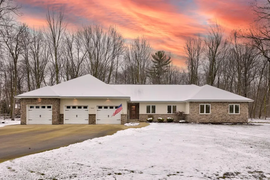 Nestled in the tranquil embrace of Timber Point Estates, 9102 Old Hickory Lane stands as a testament to exquisite living on The Timbers golf course. As you approach this idyllic ranch-style residence, you're greeted by the serenity of landscaped lawns, whispering woods, and a secluded ambiance that defines the essence of peace and privacy. This meticulously crafted 2550 square foot home is a masterpiece of design and attention to detail. Boasting 3 bedrooms and 2 full bathrooms, the layout of this residence is not just functional but also appealing to the discerning eye. The interior is a showcase of impeccable craftsmanship with custom cabinetry and woodwork. The heart of this home is a culinary haven, featuring top-of-the-line appliances such as the Wolf 6-burner stove and a sub-zero refrigerator, and a well-appointed kitchen pantry that ensures every culinary need is met. The great room, adorned with a stone fireplace, becomes the focal point for gatherings and relaxation. The primary bedroom is also a sanctuary with its own fireplace, creating a cozy retreat. In addition to the main laundry room, you will love the convenience of the primary ensuite laundry area. Monitored security options provide peace of mind, and a geothermal whole-home generator ensures uninterrupted comfort regardless of the elements. Step outside into the double lot, where a screened porch awaits, complete with trayed ceilings and a ceiling fan for the perfect outdoor escape. The backyard is transformed into an oasis with Trex decking and audio deck speakers, that seamlessly blends nature with luxury. This residence is more than just a home; it's a realization of a dream wish list. Every detail, from the layout to the appliances, has been carefully considered to create a haven that harmonizes with its natural surroundings. Experience the epitome of comfortable living in this secluded retreat, where the beauty of nature meets the finest in design and functionality.