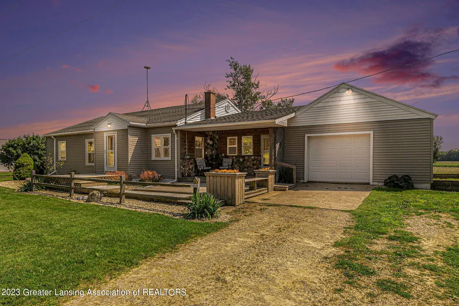 Surrounded by fields & country neighbors, this 3 bedroom 1.5 bath ranch will provide the peaceful setting you've been dreaming of! Listen to the rustling of the willow tree while you relax on the covered front porch! This 2.42 acre parcel provides enough room to add a big garden, or that pole barn you've been wanting! Large kitchen, open living & dining room, nice sized bedrooms, hardwood floors! First floor laundry & attached 1.5 car garage too! Lots of updates here, so you'll be able to move in & enjoy! New drainfield in 2019, furnace & a/c in 2019, H2O heater 2022, Main bath updated in 2023, Gutters & Downspouts added too! Come check out this darling country haven! You won't want to miss it!