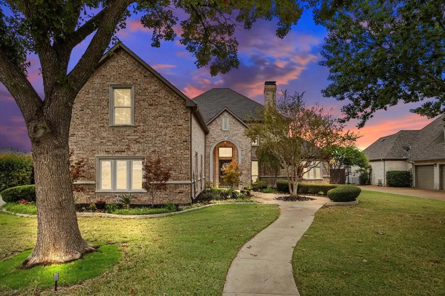 Meticulously maintained 4-bedroom, 4-bath custom brick home, set on a beautifully landscaped .34 acre lot in a premier resort-style community with swimming pools, tennis-pickleball courts, playground, & golf course. Ideally located near top-rated schools, shopping, & scenic Lake Ray Hubbard. Enter through grand foyer with soaring ceilings, hand-scraped hardwood floors & majestic staircase. Entry flows seamlessly into elegant living area featuring stately cast-stone fireplace & an inviting dining areaperfect for family gatherings & entertaining. Butler's pantry connects the dining area to the dream kitchen, which boasts a center island with breakfast bar, top-of-the-line commercial stainless steel appliances, & opens onto a spacious family room with fireplace. Home office provides a serene & productive workspace for those working remotely. Expansive master suite includes a cozy sitting area, a luxurious spa-inspired bath, a walk-in closet, & dedicated exercise room. A generous guest suite offers an en-suite bath & large cedar closet. Second living-media room includes access to covered balcony that overlooks lush grounds. Two additional bedrooms come compete with roomy closets, while the laundry room is thoughtfully designed with custom cabinetry, sink, & hanging area. Step outside to a vast covered patio, ideal for al fresco dining & outdoor relaxation, overlooking a large fenced backyard. Additional features include a 3-car garage, extended driveway, & floored storage space. This home is the perfect blend of luxury, comfort, & functionality in an unparalleled community setting.