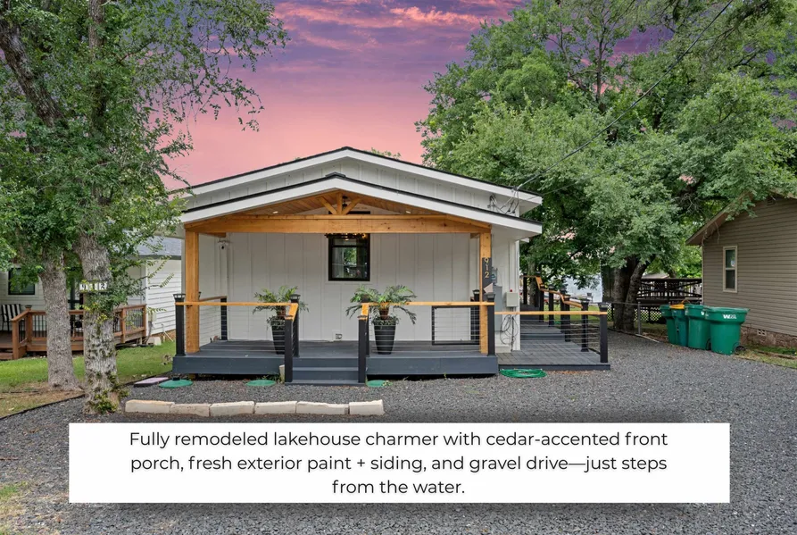 Rare Find: Positioned on a deep, open-water cove—not a narrow canal—this is true lakefront living. Perfect for swimming off the dock, lounging on lily pads, and hosting unforgettable gatherings. Welcome to your reimagined lakeside escape in Granite Shoals—one of Lake LBJ’s most sought-after and laid-back waterfront communities. This turnkey retreat blends modern Hill Country style with relaxed lake living, offering direct lake access, a fully renovated private boathouse with guest suite and jet ski slip, and over $300K in upgrades. Ideal for full-time living, weekend getaways, or a high-performing STR. With a second bathroom, the boathouse could become a future B&B suite or true in-law unit. Inside, enjoy an open-concept layout anchored by a dramatic floor-to-ceiling window wall with panoramic lake views. The kitchen features an Emerald Green Quartzite waterfall island, and the spa-like bathroom boasts premium finishes you won’t find in a typical flip. The boathouse is a wellness sanctuary with a built-in sauna for hot/cold therapy, plus new siding, windows, and floors. Highlights: • Brand-new septic (pool-ready) • New roofs on house + boathouse • Whole-home water filtration • ~$40K bathroom remodel • ~$40K kitchen remodel • ~$20K window wall • Trex upper + lower decks Granite Shoals offers 19 city parks, boat ramps, courts, and trails—just 10 mins to Marble Falls and under an hour to Austin.
