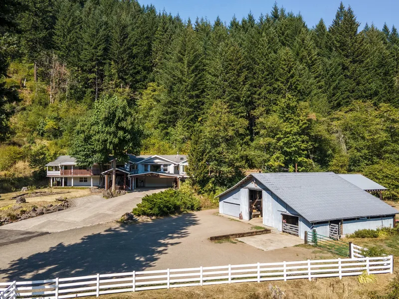 181 acres of rare and iconic gorge property with 3 private waterfalls, hiking trails, year round creek, man-made swimming pond, small apple orchard, large shop, barn, and horse arena create an ideal setting to relax and enjoy the great outdoors. Expansive covered patios, sunroom, gazebo and porch swings add character and charm. Home features an extra large gourmet kitchen, 4 bedrooms, and 3 gas fireplaces. The finished daylight basement has a separate entrance making it great for multigenerational living space or rental with a kitchenette, 2 bedrooms, large bath and gas fireplace.