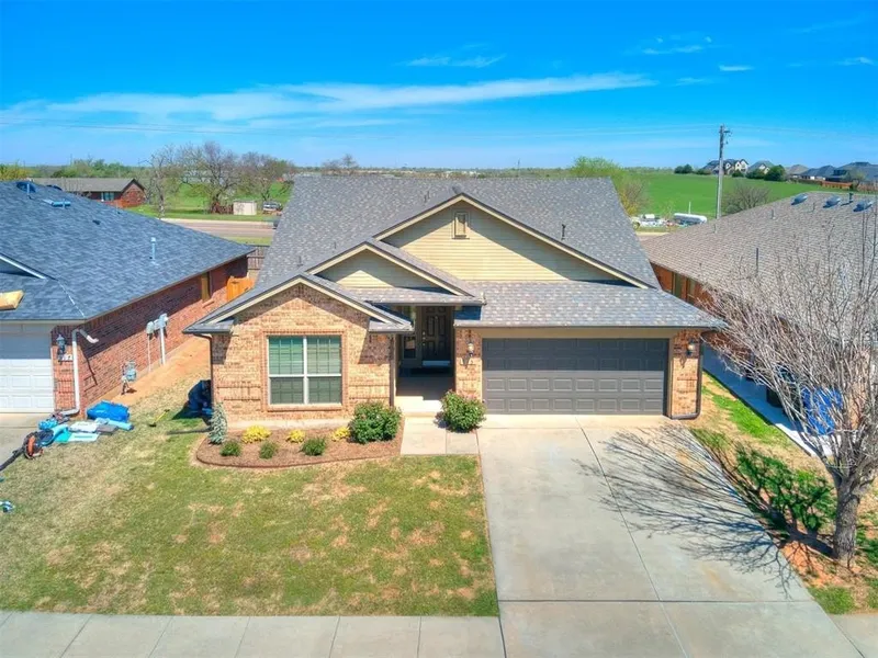 Welcome to this stunning 4-bedroom, 2-bathroom property nestled within the serene confines of Green Leaf Trails in Norman, OK. Boasting a spacious open-concept floor plan, this home offers ample room for both relaxation and entertainment. The airy living area seamlessly flows into a modern kitchen, complete with sleek appliances and generous countertop space. Retreat to the tranquility of the master bedroom, featuring vaulted ceiling and an ensuite bathroom with walk-in closet for added convenience. Outside, a large covered back patio awaits, providing the perfect setting for outdoor dining or simply unwinding amidst the peaceful surroundings. Situated within the Green Leaf Trails community, residents have access to a plethora of amenities including quiet ponds ideal for catch and release fishing, picturesque walking trails, and a vibrant splash pad for endless family fun. With its blend of modern comforts and natural beauty, this property offers the quintessential Oklahoma lifestyle.