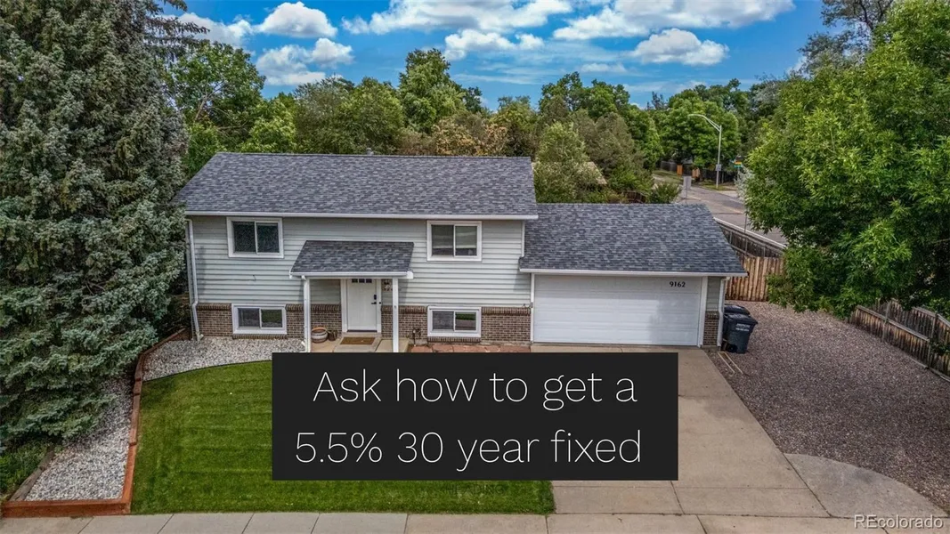 WANT TO KNOW HOW TO GET A 5.5% 30 YEAR FIX LOAN? Call 303-587-9440 That's huge savings in today's market. Ready to fall in love? This gorgeous 3-bedroom, 2-bathroom corner lot home has everything you didn't even know you wanted. Step inside and notice the bright, open great room perfect for relaxing and hosting friends. The kitchen is a showstopper with quartz countertops and gorgeous breakfast bar island that's guaranteed to become everyone's favorite hangout spot with seating for up to 8 people. All brand-new stainless steel appliances including smart oven. The master suite is your personal sanctuary with sliding barn door entrance, spacious walk-in closet, and updated bathroom. Fresh LVP flooring throughout gives you that beautiful hardwood look with easy maintenance. The garden level is a game-changer with flexible great room plus two more bedrooms and full bath – perfect for guests, home office, or workout space. This place is seriously smart: keyless entry, smart garage door, and Google Nest thermostat. Everything major is brand new in 2022 – water heater, furnace, AC with HEPA filter, interior paint, and gorgeous floors, plus roof with hail-resistant shingles, which means lower insurance costs. The attic fan helps cool the house faster in summer, keeping energy bills down. The backyard is where you'll spend weekends: Trex deck and stone patio. The fenced driveway gives you space for RV, boat, or whatever toys you've got, and there's no HOA. The shed is perfect for workshop, art studio, or retreat space. You're minutes to Westminster Hills dog park, and you'll love the beautiful walking trails that lead to Standley Lake – just a 15-minute walk away! With 3 parks within 10 minutes, you'll never run out of outdoor recreation options. Easy highway access to Denver and Boulder. Shopping and dining are close but you'll love coming home to this peaceful corner lot with mature trees. This home checks every box. Schedule your private showing today!