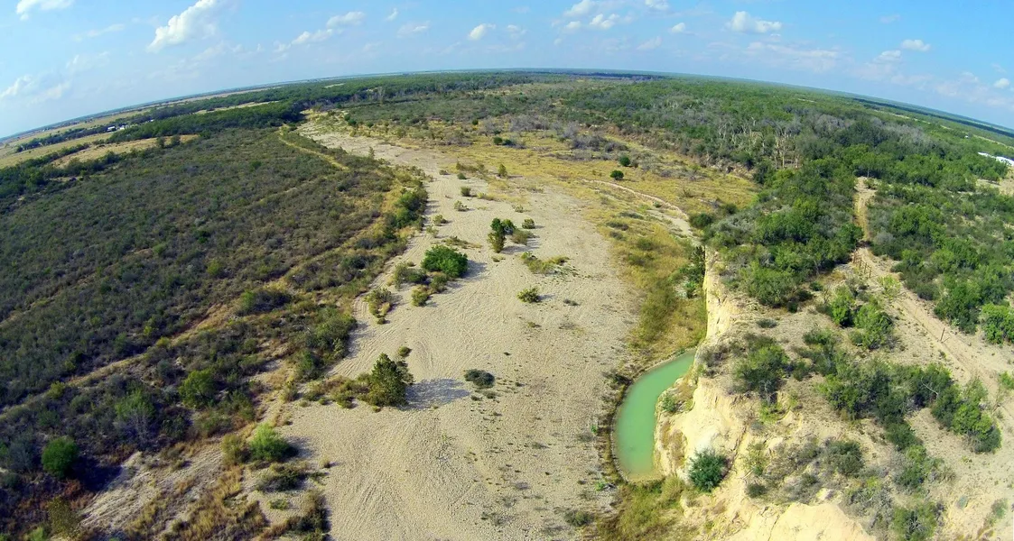 WATER: Mustang Creek is a seasonal creek, lined with large hardwood trees, that traverses the property and provides major runoff to the Nueces River along with outstanding wildlife habitat. One of Texas' major rivers and certainly one of its most scenic, the Nueces, has traditionally had strong flow from its headwaters in the Hill Country, through South Texas to its terminus near Corpus Christi. The epic drought which began in Texas in 2007 has taken its toll on all Texas rivers and the Nueces is no exception. The deep blue hole on the south end still has water in it today, and in good times is believed to be 20' deep. Pray for rain to restore this treasure which runs for 2.5 miles along the eastern boundary of the property! There are 2 Carrizo water wells on the property. The north Carrizo well is believed to be apx. 300' deep with the pump being set around 260 feet. The well is run by a 1.5 HP pump and currently pumps apx. 10 GPM. This well provides water to all of the improvements, 3 water stations and 1 water trough. The south Carrizo well is reportedly apx. 320' and is run by a HP pump. This well currently provides water to 3 wildlife watering stations and 1 water trough, and is believed to pump around 6 GPM.