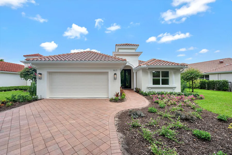 Welcome to 917 Tierra Lago Way, where panoramic lake and golf course views set the backdrop for stylish and elevated living in The Vineyards. This thoughtfully updated four-bedroom plus den, four-bath home offers approximately 2,800 square feet under air and over 3,500 total square feet of elegant, well-designed living space. The open-concept great room connects seamlessly to the dining area and a stunning kitchen featuring marble countertops, a spacious center island, stainless steel appliances and a designer range hood. Wide-plank hardwood flooring, high ceilings, and custom lighting add warmth and sophistication throughout. The primary suite is a private retreat with lanai access, custom walk-in closets and a spa-inspired bath complete with soaking tub, frameless glass shower and dual vanities. Three additional guest bedrooms and a flexible den space provide plenty of room for family, visitors or a home office. Go outside to a spectacular screened lanai with an infinity-edge pool, covered outdoor living and dining areas, and long, uninterrupted views of the water and golf course beyond, ideal for enjoying Naples beautiful weather year-round. Additional highlights include a reimagined laundry room with cabinetry and storage, an elegant foyer entry and an attached two-car garage. On a quiet cul-de-sac in one of Naples desirable gated communities, with access to optional country club membership offering golf, tennis, pickleball, fitness and more.