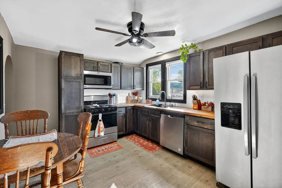 WELCOME HOME! You'll love this updated 2+ bed/1 bath home with everything ya need on one level! The main floor features updated flooring throughout & newer paint! The remodeled kitchen has newer wood cabinets, tile backsplash & all appliances included! Right off the kitchen is a main floor laundry room that can double as bonus kitchen storage pantry! Updated bath with newer vanity, flooring & shower surround! There are 2 bedrooms PLUS a flex room that would make a great office, playroom, and/or non-conforming bedroom (no closet)! The unfinished basement is a good spot for storage/shelter! Outside you'll love the deck & fully fenced yard! Storage shed included! Off street parking spots right off the alley, too! All information obtained from seller and public records.