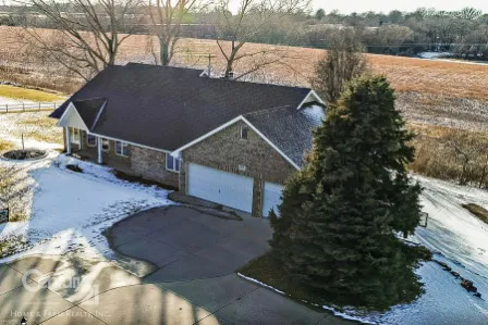 What a house in excellent condition, all brick, walkout, first floor laundry, 4 bedroom ranch, in town 1.12 acreage, 3 car garage plus a 780 ft. Stress core storage in lower-level, hardwood floors, eat in kitchen, formal dining room, large living room with fireplace, and deck is across back of house for all your relaxing sunsets. Master bedroom bath has whirl pool tub and shower, basement has rec room with built in cabinets for your precious items, another fireplace, another bedroom and a Nebraska bathroom with steam shower. A must see lots of storage in this home.