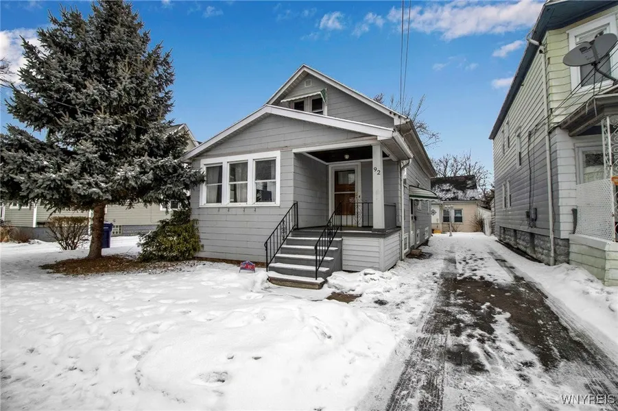 Welcome Home! This unique and very rare property has 2 separate houses on one lot in the heart of South Buffalo. Located on a quiet street, the front house is vacant and ideal for an owner occupant looking to supplement their mortgage payment with rear house tenant. The front house includes 3 bedrooms, two on the first floor, one on the second, with newer carpets and 2 full bathrooms, one on each floor. Some highlights include: refinished hardwood floors, a large dining room with stunning custom cabinetry which is perfect for entertaining, updated kitchen with white cabinets, countertops, and modern lighting. The first floor full bath has tile flooring. The second floor has a large bedroom with full bath and an additional unfinished room which could easily become a 3rd bedroom or large storage space/closet. Modern mechanicals and update electric. Rear Cottage style house has wonderful tenants and includes 3 bedrooms, living room, large kitchen, updated full bathroom with tiles floor, new modern floors throughout, and freshly painted. Newer furnace and central AC, water tank update electric. Young roof, vinyl floor for front porch.