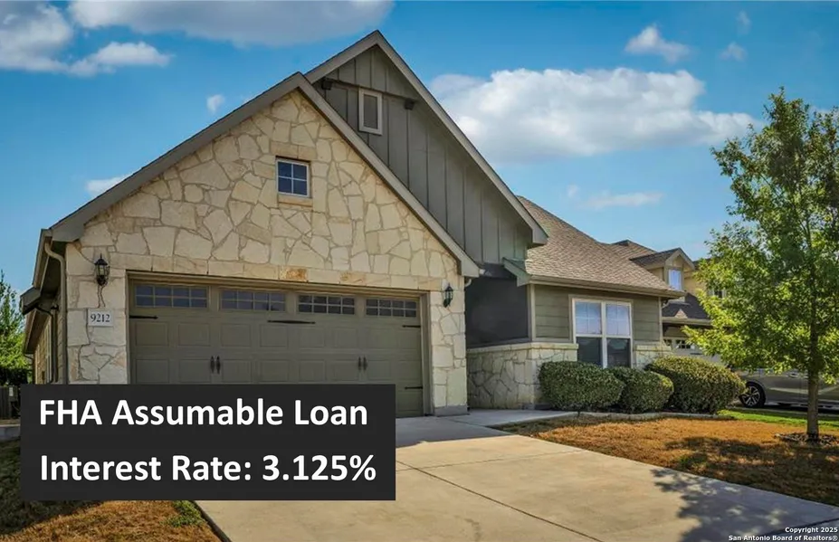Assumable 3.125% FHA Loan, 45 day closing available. Spectacular one-story in The Crossvine, priced right and move-in ready! The inviting rock exterior and covered front porch lead to a spacious tiled entry with recessed lighting. The large family room flows into an island kitchen with double ovens, gas cooktop, and custom cabinetry. A built-in study nook near the primary suite provides the perfect workspace. The primary retreat offers an oversized walk-in shower, dual vanities, and a huge closet. Enjoy a private backyard with a covered patio. Ceiling fans throughout, plus a water softener, gutters, and full irrigation system. Exceptional community amenities and Schertz ISD!