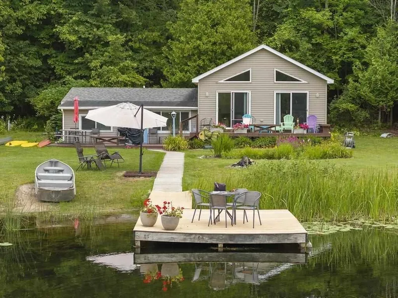Nestled on a serene riverbank with 450 feet of waterfront access leading to the pristine Lake Saint Clair, this delightful five-bedroom, two-bathroom cottage offers a perfect blend of charm and tranquility on 5 acres of lush land. With 1,250 square feet of cozy living space, this retreat is the ideal sanctuary for those seeking waterfront living. Step inside to discover a welcoming interior featuring comfortable bedrooms, a well-equipped kitchen, and a warm living area, perfect for relaxing or hosting guests. The outdoor space is a true gem, with a generous waterfront deck where you can enjoy the soothing river views, host gatherings, or simply unwind in the peaceful surroundings. This tranquil river is part of the chain of lakes, with Intermediate Lake resting at the southwest end and Six Mile Lake at the southeast end, offering endless opportunities for exploration and enjoyment on the water. Whether you're looking for a peaceful escape or a waterside playground, this property offers endless possibilities. Embrace the beauty of waterfront living and make this charming cottage your own private haven. Don’t miss the chance to own a piece of paradise on the tranquil riverbanks leading to Lake Saint Clair and connected to the stunning chain of lakes!