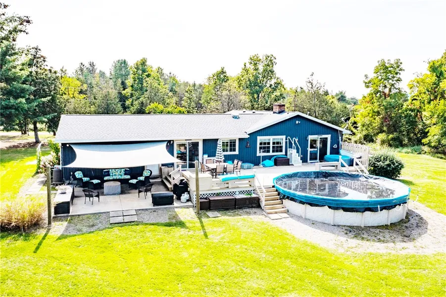 Keuka Area-3 bedroom, 1 1/2 bath ranch home on the east side. So many updates within the last 5 years, which include all appliances, roof, FHA & central AC, hot water heater, and pool motor and liner. 5+ acres, partially wooded and within a few minutes of Hammondsport village (America's Coolest Small Town). 1900 sq. ft. of finished area, including a large office on the lower level. Hardwood floors throughout the majority of the main level have been protected with carpeting for a number of years. Wood-burning fireplace currently converted to propane, formal dining area, kitchen/family room combo, attached garage, large deck off the home to a 24' round pool. To be sold partially furnished, and too many other exciting features to mention here. Seller will review all offers starting October 3rd at 12:00PM. Owner occupied so do make an appointment to view.
