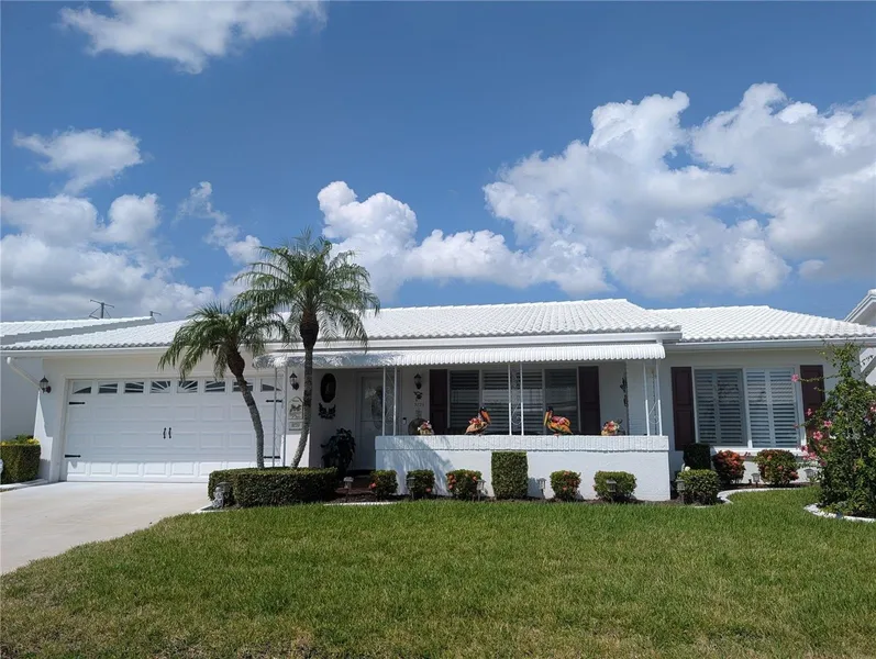 Attention Golfers, Sunseekers, Snowbirds... perfect opportunity to own a fantastic home on Florida's Gulf Coast. Located close to Mainlands Unit 6 clubhouse & pool, this well maintained 2BR/2BA/2CG "Gormay" showcases Pride of Ownership. A coastal flair showcases the exterior. The covered front porch provides a relaxing space to enjoy the Florida lifestyle. Main entry into living room features a stunning hardwood landing. The open concept living area includes the Living, Dining & Florida rooms all surrounding the "Heart of the Home"... the kitchen. Bedrooms & baths are located in hallway accessed from living room. Interior features in living area include warm autumn décor, rich wood flooring and neutral carpeting, ceiling fans and updated light fixtures. The eat-in kitchen features large pantry area, stunning granite countertop, white cabinetry, white double sink satin with tall nickel faucet w/pulldown sprayer, white appliances (Whirlpool refrigerator/glass cooktop range, GE microwave hood/dishwasher), inset ceiling with amazing uplighting, ceiling fan and tile floor. Eat in dining area has direct access to laundry area, located in the garage, which offers a Whirlpool Washer/Dryer set. The Florida room has a wall of windows providing great natural light as well as an awesome view of the backyard, ceiling fan & pass thru window to kitchen... great for entertaining. Dining room connects living room, Florida room & Kitchen. Spacious Primary & Guest bedrooms each have large walk-in closets, ceiling fans, large windows & carpeting. Both bathrooms feature raised vanities with solid surface countertops, satin white vanities, tile flooring, light bars, newer commodes, vents, mirrored medicine chests & satin nickel faucets/shower heads. Primary ensuite bath offers a white walk-in shower w/glass doors & handheld shower heads. Guest bath has a white bathtub w/shower, white tile tub surround. Exterior features include a new cement driveway, covered front porch, gutters/downspouts, updated windows, French drain & tile roof (2003). In addition to the laundry area, the Garage features keyless entry, updated GE Electrical Panel, Carrier HVAC system (2015), State water heater, pull-down stairs, Chamberlain garage door motor (2025), work bench, extra storage cabinets & exterior side door. Unit 6 welcomes 2 pets! Monthly maintenance fee of $395 includes lawn care/irrigation maintenance, exterior painting/power washing, water/sewer/trash, internet/cable in addition to maintaining all community property (clubhouse, pool, roads, sidewalks, lakes)! Mainlands Unit #6 is in an active, 55+ community offering a clubhouse, heated in-ground pool, shuffleboard courts, public golf course & many other activities. A Tropical Paradise located in the "Heart of Tampa Bay" centrally situated between St. Petersburg, Clearwater & Tampa. Additional conveniences include nearby shopping, sporting/cultural venues, excellent medical/emergency care facilities, restaurants, banking, churches and easy access to beautiful Gulf coast beaches, interstate & two airports.