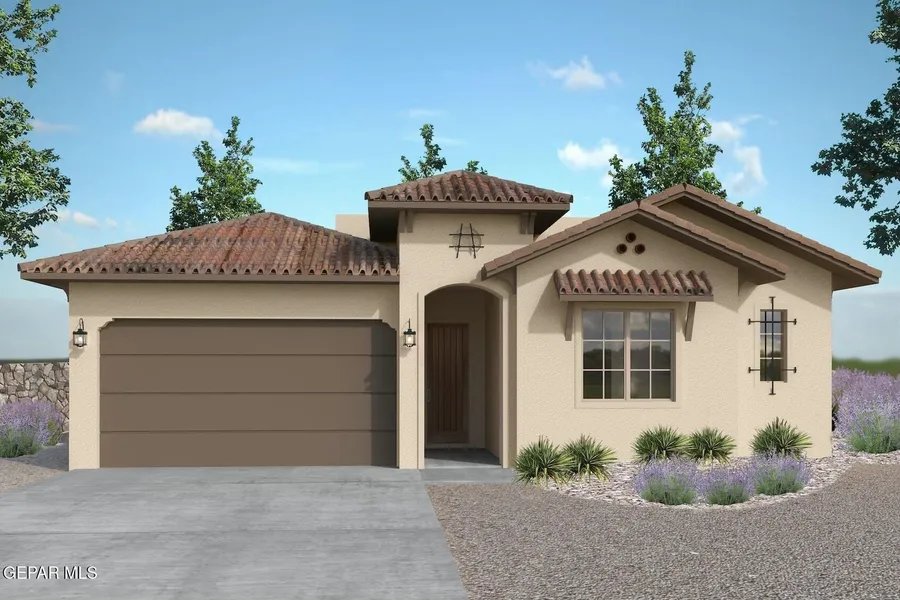 Experience the elegance of the Pebble Beach Spanish - a premier design located in the Painted Sky at Mission Ridge community of East El Paso. This stunning 4-bedroom, 3-bathroom residence combines superior design with top-notch construction. Energy Star Certified: enjoy the benefits of spray foam insulation, 14 SEER HVAC, whole house ventilation system. Sophisticated Details: finished plywood cabinets with decorative lighting, quartz countertops, and stylish window shutters. Spacious Interiors: impressive 10 and 12-foot ceilings throughout the entry, living room, dining area, and kitchen. This home offers remarkable value and a unique opportunity for all buyers. Contact us today to schedule your appointment and explore the luxury of El Paso's premier new construction home builder!