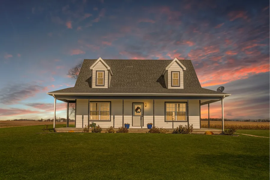 This charming farmhouse, situated on a tranquil 1.5-acre parcel, is the essence of country living. Constructed in 2017, the home is modern and new, yet exudes the quaint feel of an older home. The main level features a generous primary bedroom with vaulted ceilings and a relaxing, spa-like ensuite bathroom. Upstairs, two spacious bedrooms provide plenty of space for kids or visiting family. The open floor plan and vaulted ceiling in the great room, create a spacious and airy atmosphere throughout the home. The property's charm extends outdoors with a wrap-around porch, inviting you to enjoy morning coffee or view breathtaking sunsets in a tranquil setting. The surrounding countryside is a picturesque backdrop, creating an oasis for a simple and relaxed rural lifestyle. Just minutes away from the Big Four Trail, outdoor enthusiasts can indulge in leisurely walks or bike rides, while the convenient access to Interstate 65 facilitates easy travel north or south. Embrace the allure of country living while enjoying the convenience of modern amenities in this welcoming home.