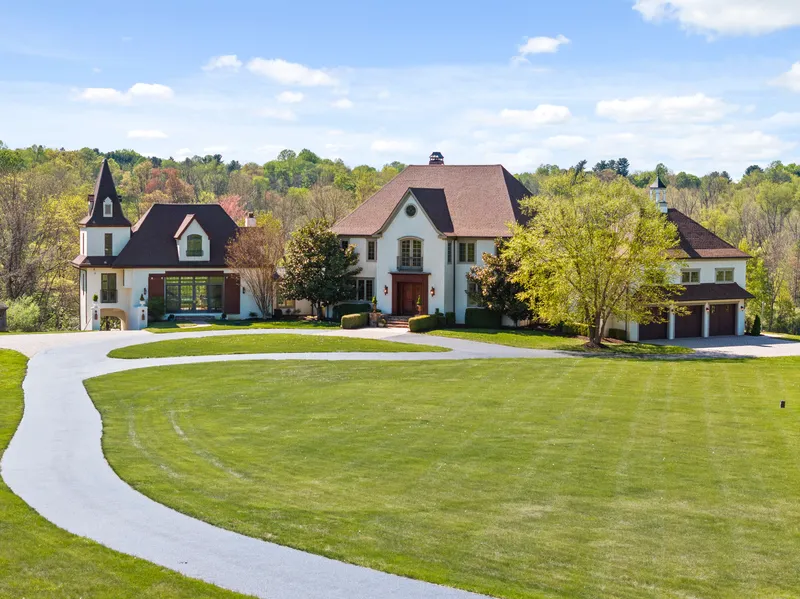Welcome to 925 Drovers Lane, a home that feels both timeless and extraordinary! Where European elegance, artisan craftsmanship, and natural beauty come together on 23 rolling acres of Pennsylvania countryside. From the moment you arrive, the setting takes your breath away. Gentle hills, wooded paths, flat lawns, and a winding creek, creating a sense of peace and privacy that’s increasingly rare. Inside, every detail tells a story of design and intention. A dramatic two-story foyer opens to a magnificent great room, where twin chandeliers and a wall of windows fill the space with light and grandeur. The formal dining room invites both intimate dinners and grand celebrations, perfectly complemented by a butler’s pantry with bespoke cabinetry and a striking green stone countertop. The chef’s kitchen is as functional as it is beautiful, anchored by dual islands for cooking and entertaining, a professional-grade Viking range, built-in Sub-Zero refrigerator, hammered copper sink, and double dishwashers. Nearby, a walk-in pantry, convenient powder room, and oversized three-car garage provide seamless day-to-day living. A 900-square-foot gym with a sauna completes the main level, making wellness part of your everyday routine. Upstairs, the primary suite feels like a private sanctuary, with treetop views and a luxurious bath featuring a soaking tub, dual vanities, and walk-in shower. Two additional en-suite bedrooms and a spacious laundry room complete this level. The finished lower level was designed for leisure and connection, featuring a custom wine room, a half sport court for year-round recreation, a guest suite, and a walk-out terrace with beautiful stonework and views of the landscape beyond. The guest house offers complete independence for family, guests or staff, with two bedrooms, two baths, an aviator-themed bar, dining/game area, and a cozy fireside living room with custom faux-wood paneling. An additional garage below adds versatility for vehicles or hobbies. Whether you envision a private retreat, a home for entertaining on a grand scale, or a multi-generational estate, 925 Drovers Lane offers a lifestyle that’s as elevated as it is effortless: a rare blend of grace, privacy, and presence in an unforgettable setting.