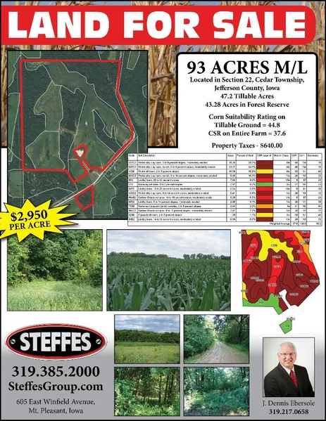 Corn Suitability Rating on Tillable Ground = 44.8; CSR on Entire = 37.6