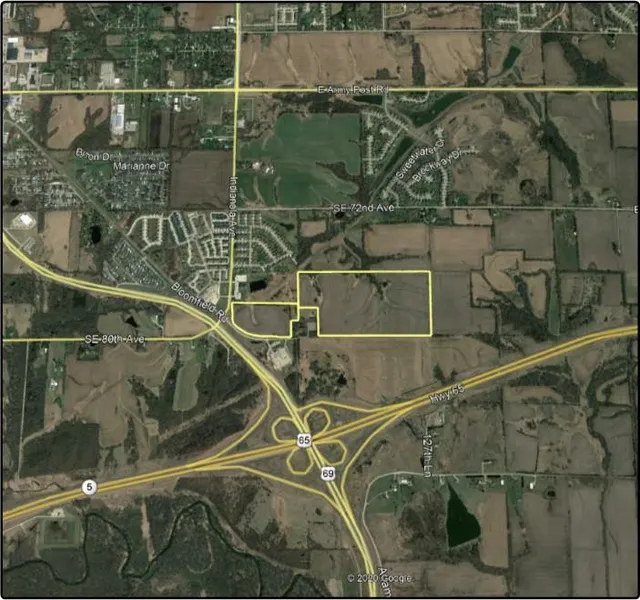 93.42 acres, m/l, of transitional farmland in two parcels will be offered individually and/or in combination via one-chance Sealed Bid Sale. Property is located within the City Limits of Des Moines, just north of the Highway 65/69 & Highway 5 Bypass interchange.