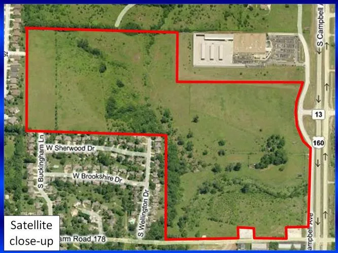 It is the largest contiguous acreage offering in Springfield. Great location next to James River Commons anchored by Sams and Academy and Outlet Center, and next to the Springfield Library Center.