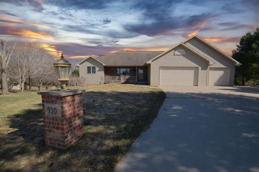 Hard to find established 1 story walk out on a cul-de-sac located on approx. 1.63 acres! Once inside find this quality built one owner home w/ large light & bright living rm w/ vaulted ceiling & 2 way fireplace. Updated kitchen area w/ pantry, appliances, many cabinets, counter space & island. Dining area w/ patio doors leading to a large deck overlooking the yard w/ mature trees. Primary bedrm w/ full bath & w/in closet. 2 other generous size bedrms split bedroom design. Walk out w/daylight windows, spacious family rm, wet bar, 1/2 bath, wood stove & an additional rm currently used as a office/workout rm. Bsmt access to garage is more than meets the eye, the heated 3rd stall is a 2 stall tandem offers sink & huge workshop area. Additional 23x15 shed in the back. Welcome Home!