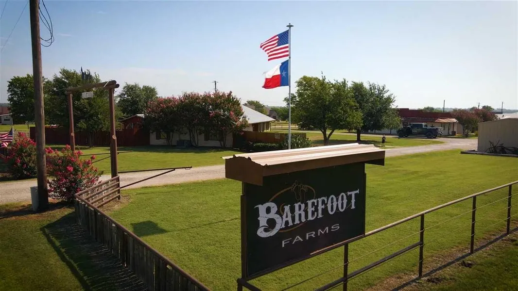 - Take Exit 478 off I-35 and proceed west to 4 way stop at FM 2450. Turn left and go south to Barefoot Farms on left side of the road.