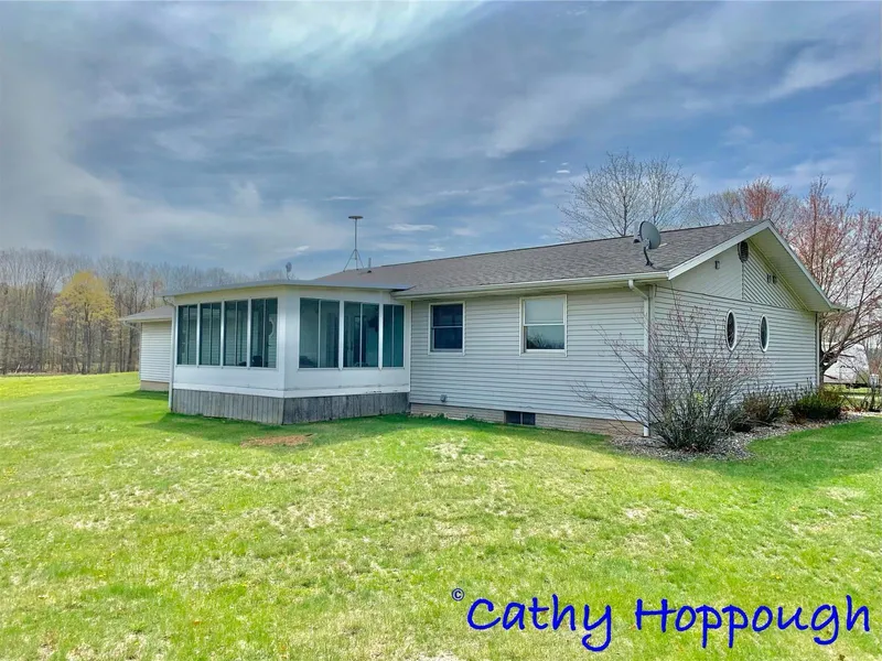 As you drive down through the pines, you will fall in love with this ranch home nestled on 30 prime acres. Wildlife abounds with gorgeous views from every window. Very nice ranch home is bright and airy. Enjoy the quiet and your coffee in the 3 season room. Attached two stall garage plus 24 x 48 pole barn. This is a rare find - look today!