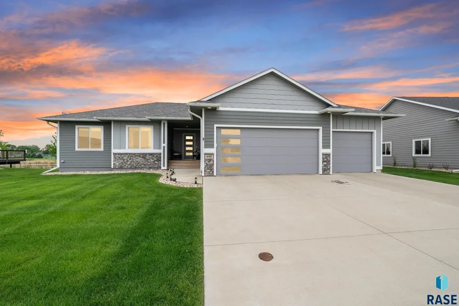 MOTIVATED SELLERS! Professionally cleaned and move-in ready! Have your own peaceful oasis at home, waking up to pond views and no backyard neighbors. It's your own little slice of calm, right in the heart of Tea. This fully finished 5-bed, 3-bath home blends modern style with everyday function, offering an open layout, three main-level bedrooms, and a convenient drop zone with main floor laundry. The lower level features a spacious family room, two oversized bedrooms, a large storage room, and a flex space perfect for a home office, hobby room, or dream walk-in closet. A spacious three-stall garage offers plenty of room for vehicles and extra storage. The fully fenced yard and close proximity to parks, the pool, and schools make this one check all the boxes and then some.