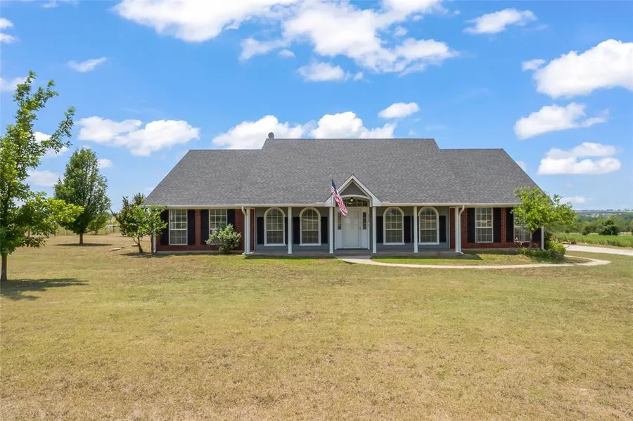 Priced with 5 acres, but owner amenable to increasing acreage! This beautiful, traditional brick home is situated on 5 rolling acres with scenic views, located outside the city limits. The 3 bedroom, 3 bath home has been updated with wood-look tile floors, new interior paint and carpeting. The kitchen features granite counters, oversized sink and industrial faucet, with an adjoining dining area. The spacious master suite is separated from the other bedroom wing, includes a walk-in closet and bath with separate shower and garden tub. A large utility room connects to both the kitchen and master bath. Home includes covered front and back porches, as well as a second enclosed back porch. Above ground pool is fully refurbished and ready for the hot, Texas summers! The adjoining carport holds 3 cars and is tall enough for most horse and utility trailers. As an added bonus, the property also includes a separate 2 car garage with a bathroom and upstairs living area. (New survey needed to create 5 acre parcel. 3rd bath in garage bonus room is currently not connected to aerobic septic.)