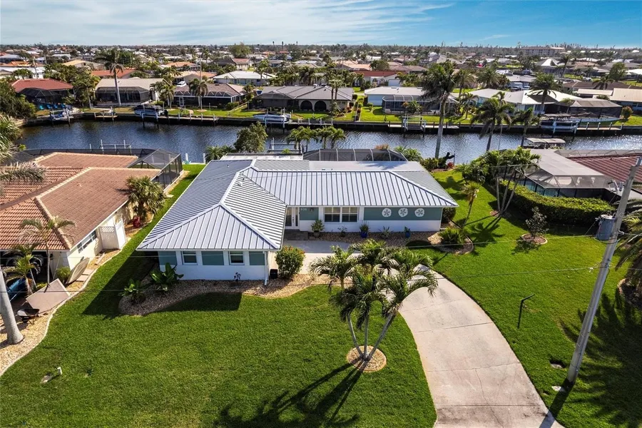 Under contract-accepting backup offers. Welcome Home to this Stellar 3 bed/2 bath/2 car side entry garage, waterfront canal and pool home centrally located in the coveted Punta Gorda Isles community of Southwest Florida! Few homes epitomize the relaxed tropical embrace that is synonymous with the “Florida Lifestyle” like this house does. Irresistible eastern exposure on the lanai Oh My!! Tropical paradise! Beautiful, updated, move-in ready, salt waterfront - a 20-minute ride from your dock and 10,000-pound boat lift to Charlotte Harbor leading to the Gulf of Mexico. Return from a day of fishing to the extended dock with stainless steel fish cleaning station to prepare your catch. Mature landscaping including a mango, banana, avocado, lemon and a key lime tree surrounds this home. Enjoy a fabulous outdoor area, the oversized lanai, perfect for entertaining, boasts beautiful pavers, and your crystal-clear pool. A boaters dream home protected by high impact hurricane windows, sliders, doors and a durable metal roof completed in 2023 for peace of mind. This home features a split floor plan with tile throughout the main living areas for a clean and elegant feel. In the kitchen you’ll find new quartz countertops with new contemporary soft close shaker cabinets, a breakfast bar and new stainless-steel appliances, as well as a pass-through window to the lanai. Retreat to the master bedroom for rest and relaxation - featuring luxury vinyl plank flooring with a coastal vibe and sliding doors to the pool. The master bathroom features tile floors, a tiled shower, a shaker vanity with quartz counters and a generous walk-in closet. Guests will enjoy privacy on the opposite side of the home in spacious spare bedrooms with large closets and LVP flooring. This spacious home also has a nice sized living room with a dining area to one side, as well as a family room next to the kitchen with sliders to the lanai. An ample sized laundry room separates the main living area and the garage and features a new washer and dryer, a large storage closet and a pedestal sink. New electrical panel installed 2025. Located close to Punta Gorda’s historic downtown and Fisherman’s Village with its quaint shops, restaurants and waterfront parks, this is your opportunity to enjoy all the Florida lifestyle has to offer. VALUE PACKED! EXCEPTIONAL WATERFRONT HOME IN PRESTIGIOUS PUNTA GORDA ISLES--WILL NOT LAST! Call directly for a private tour.