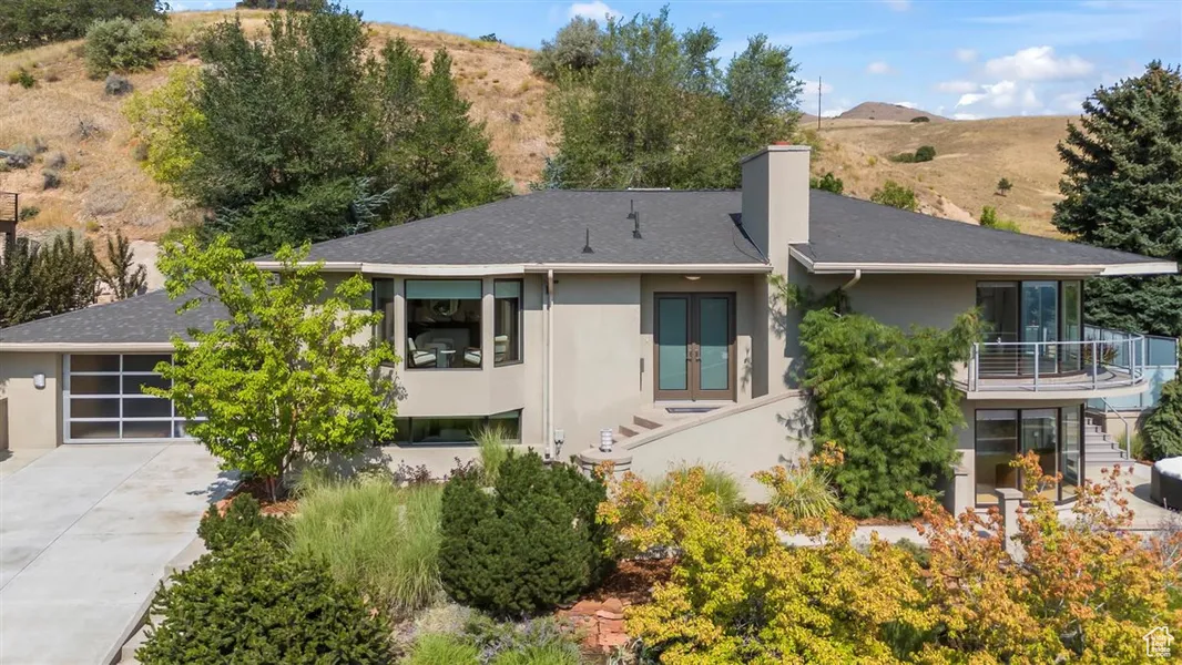 Stylish and sharp modern home at the top of Terrace Hills with wide open valley, mountain and city views! This unique floor plan offers functional daily living and ideal spaces for entertaining. Main floor primary bedroom suite has an oversized walk in closet with built in cabinets and drawers, plus a washer/ dryer connection. Newly refinished bamboo flooring throughout, fresh and clean white walls on the main floor, lots of natural light including a neat curved walls of windows that brings the views inside both the main and lower levels, glossy black kitchen cabinets with bar seating that is open to the living and dining room, access to the south facing covered deck to sit and admire the private, quiet hillside and views! Lower level has 3 bedrooms, wet bar area and sitting room, family room, storage and 2 bathrooms. There are two attractive gas fireplaces. The yard has been professionally designed and installed with natural landscaping full of trees, bushes and grasses that emphasize the mountainside landscape. Hot tub, patios, red rock water feature really make this private yard stand out! Walk to Bonneville Shoreline trail. Only minutes to downtown, the U of U, airport and many outdoor attractions!